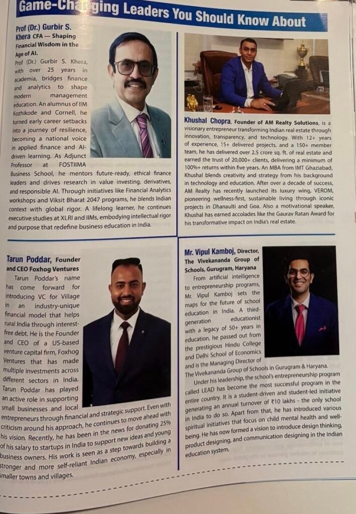 The esteemed journal highlights the ways in which Mr. Poddar has provided financial and strategic support to several small firms and local entrepreneurs. His groundbreaking work with Foxhog,